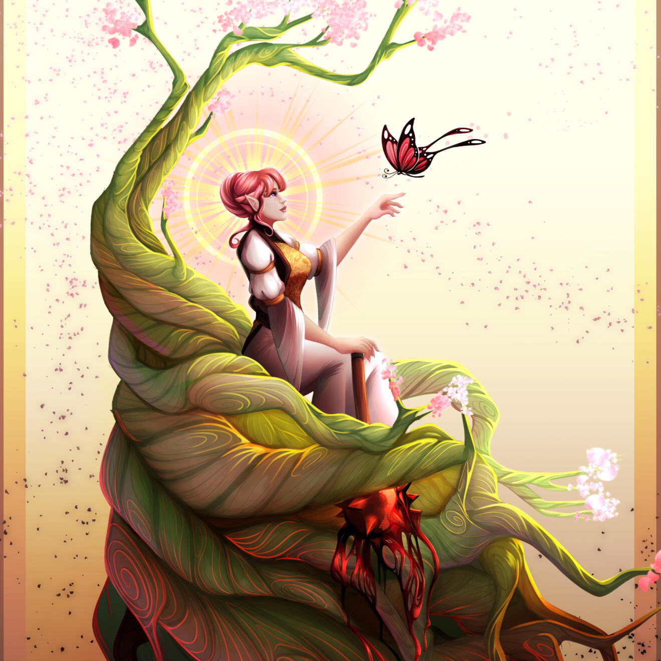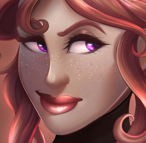 | COLORING | Strawberry Pink & Amethyst | NOTABLE FEATURES | Striking facial features (elven heritage) in direct conflict with lanky frame and posture; freckles across tops of cheek and nose |