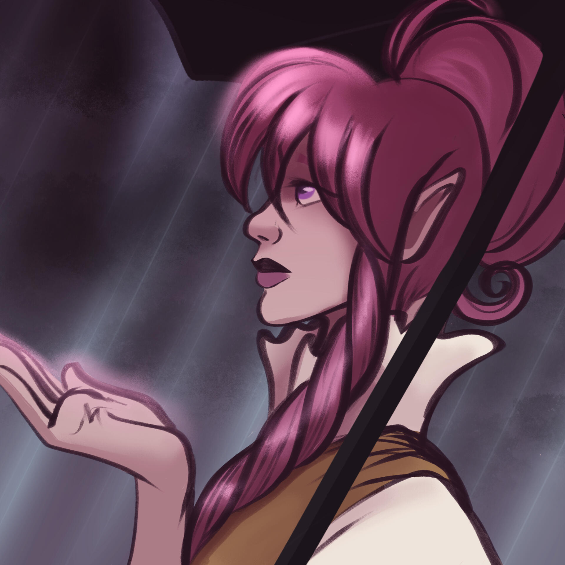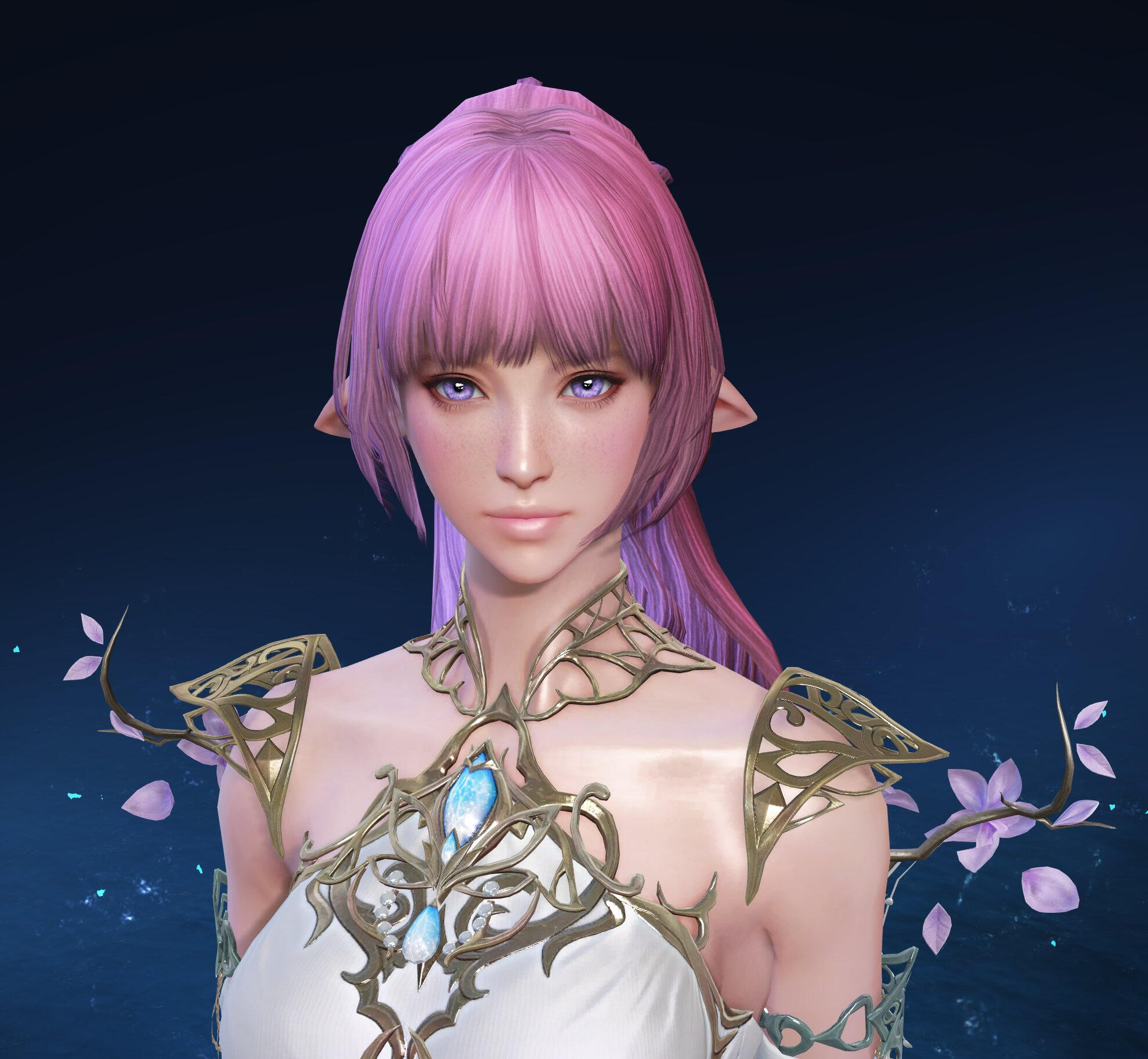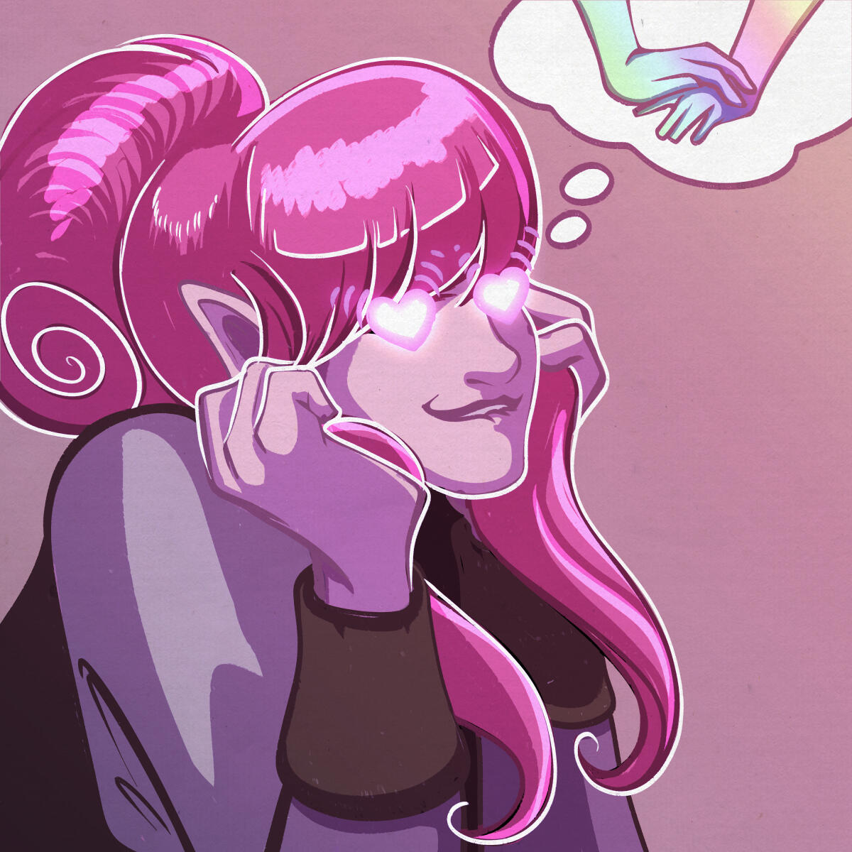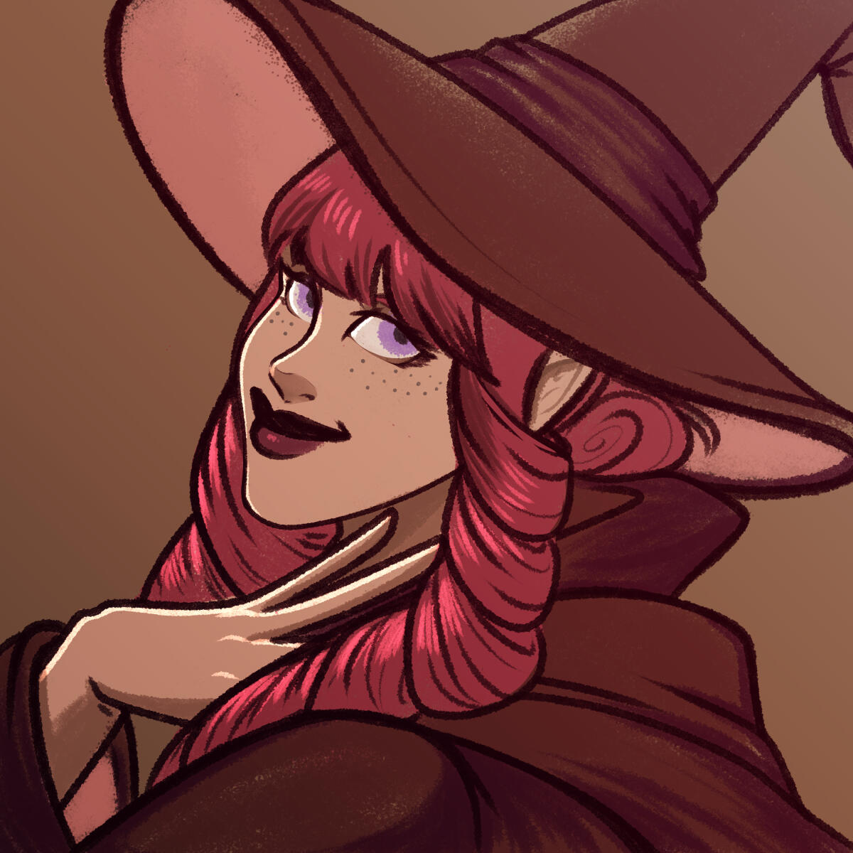 | COLORING | Strawberry Pink & Amethyst | NOTABLE FEATURES | Striking facial features (elven heritage) in direct conflict with lanky frame and posture; freckles across tops of cheek and nose |