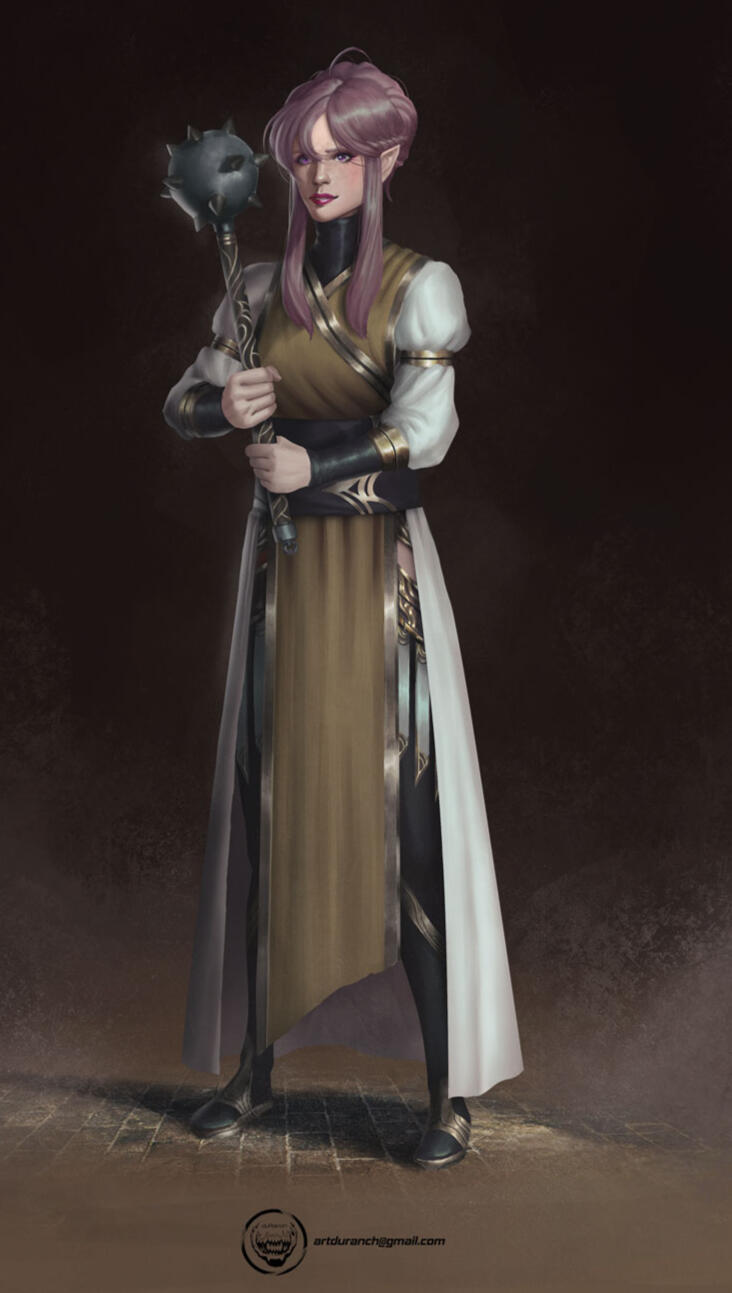 TTRPG Cleric, Defender of the Oppressed and Seeker of Justice, Innocent bean with a hidden rage, Hand holder, Dreamer, Closet prude.